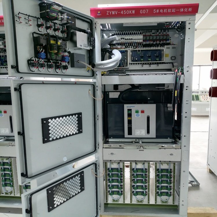 高壓啟動柜工作原理:帶開關(guān)功能的高壓軟啟動柜根據(jù)客戶的要求用真空接觸器或真空斷路器,且該設(shè)備具有高壓開關(guān)柜的所有功能,使得該設(shè)備可以和各種高壓開關(guān)柜一體并柜使用,軟起動柜采用高質(zhì)量的串聯(lián)晶閘管,無級控制輸出電壓,使電動機平穩(wěn)的起動和停止。